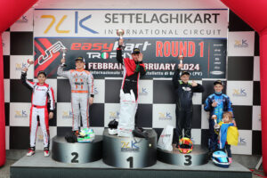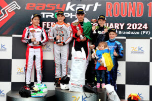 Február 25.-én rendezték a Trofeo Italiano EasyKart I. fordulóját, Castalletto di Branduzzo-ban. Vilo idén már a Széchenyi István Egyetemet képviseli és az UNI Győr WMS színeiben állt rajthoz, EasyKart 100 kategóriában. A pénteki edzésnapon az összes nagyvázas kategória egyszerre volt a pályán, a kaotikus körülmények között igyekezett a csapat a legmegfelelőbb beállításokat megtalálni a fiatal versenyző számára. A cél a megfelelő esős ív megtalálása volt és a szombati napra kezdtek körvonalazódni az erőviszonyok. Vilo a hivatalos edzéseken rendre a top3-ban végzett, esőben és felszáradó pályán egyaránt megvolt a tempó egy jó eredmény eléréséhez.